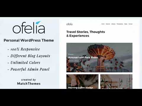 Ofelia is a WordPress theme designed for travel bloggers and adventure storytellers. The theme combines immersive visual design with readable typography, creating an engaging platform for sharing travel experiences, destination guides, and photography.