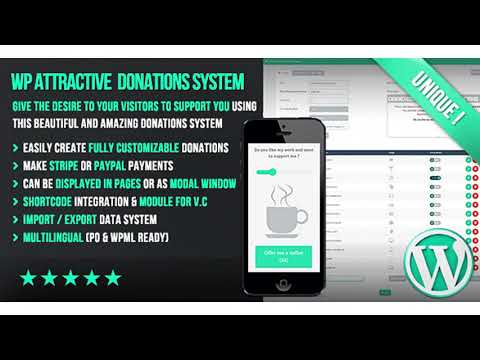 WP Attractive Donations System is a WordPress plugin for accepting online donations via Stripe and PayPal. Features customizable donation forms, recurring donations, donor management, progress bars, and donation goals for building effective fundraising pages on WordPress websites.
